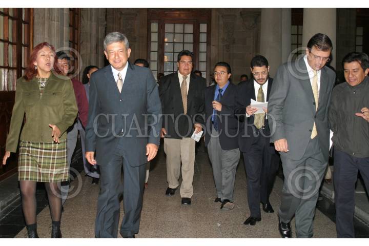 MEXICO, D.F. 01 DICIEMBRE 2004.- Andrés Manuel López Obrador, jefe de Gobierno capitalino, en compañia de su gabinete, encabeza la salida al término de su conferencia matutina. FOTO: Sandra Perdomo/CUARTOSCURO.COM