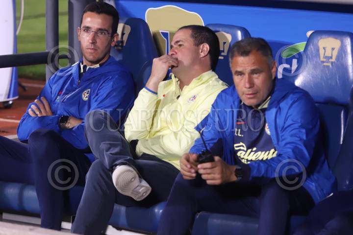CIUDAD DE MÉXICO, 20ABRIL2024. El DT André Jardine de las Aguilas durante el partido de fútbol Pumas vs América correspondiente a la jornada 16 del Torneo Clausura 2024 de Liga BBVA MX, en el Estadio Olímpico Universitario. FOTO: EDGAR NEGRETE LIRA/CUARTOSCURO.COM