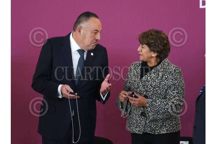 TOLUCA, ESTADO DE MÉXICO, 15DICIEMBRE2023.- Delfina Gómez Álvarez, Gobernadora del Estado de México, acompañada por José Luis Cervantes Martínez, Fiscal General de Justicia del Estado de México, encabezaron la Conmemoración del 7 Aniversario del Día de la FGJEM, en donde se realizó la entrega de reconocimientos al personal así como placas. FOTO: CRISANTA ESPINOSA AGUILAR /CUARTOSCURO.COM