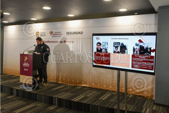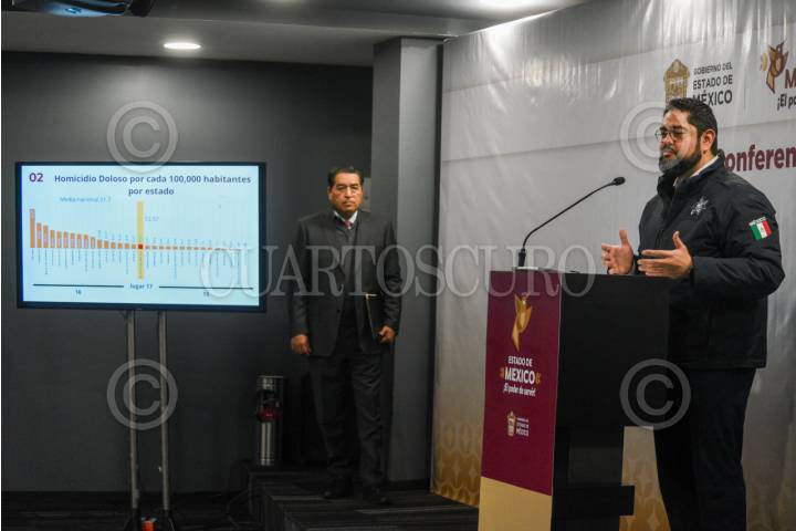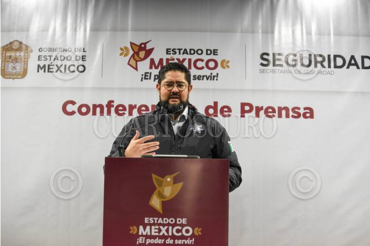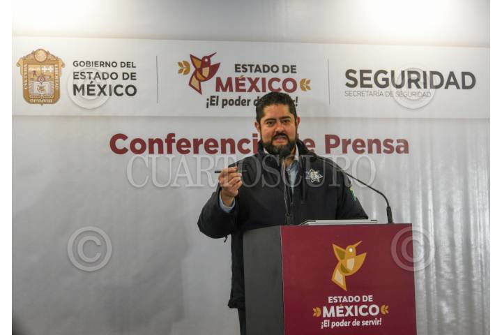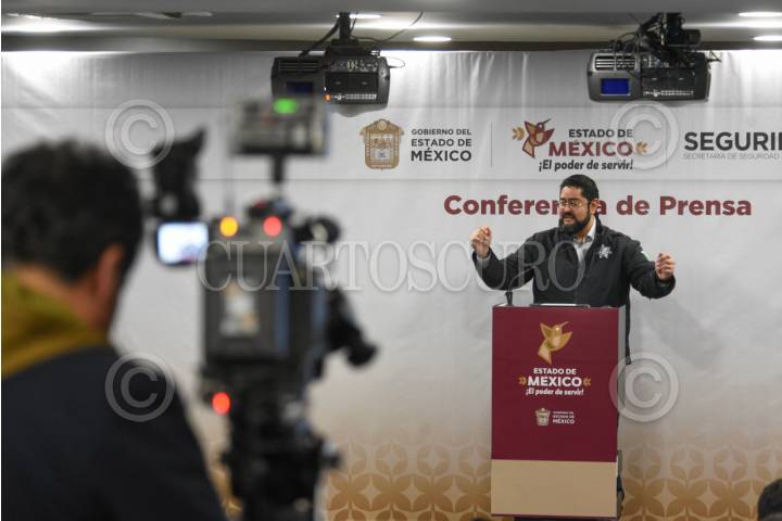 TOLUCA, ESTADO DE MÉXICO, 31ENERO2024.- Andrés Andrade Téllez, Secretario de Seguridad del Estado de México ofreció un informe semanal a medios de comunicación en donde informó de todas las acciones implementadas como parte de la nueva estrategia de seguridad en la entidad mexiquense. FOTO: CRISANTA ESPINOSA AGUILAR /CUARTOSCURO.COM