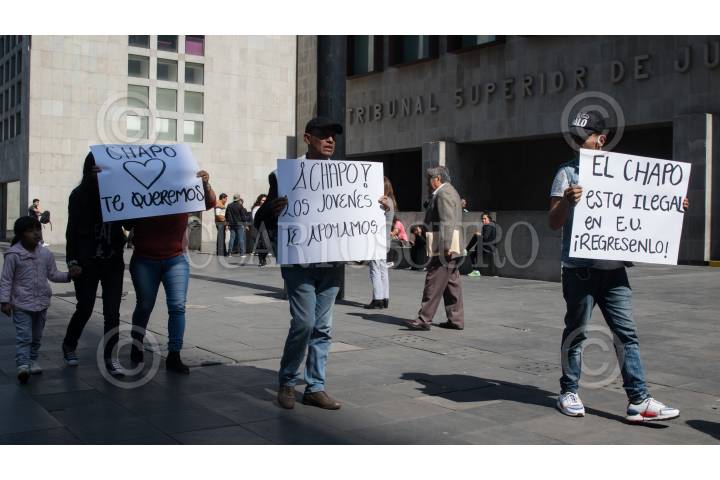 CIUDAD DE MÉXICO, 10ENERO2019.- Andrés Granados y José Luis González Meza, quienes se ostentan como abogados del Joaquín Guzmán Loera "El Chapo", acudieron a la sede de la Secretaría de Relaciones Exteriores para entregar un carta al canciller Marcelo Ebrard Casaubón en el cual le piden que el supuesto narcotraficante, quien actualmente es enjuiciado en Estados Unidos, sea repatriado y juzgado aquí en México, ya que señalan que su proceso de extradición estuvo lleno de irregularidades. Varios jóvenes con pancartas con leyendas de que "El Chapo" sea repatriado y juzgado en su calidad de mexicano. FOTO: MOISÉS PABLO /CUARTOSCURO.COM