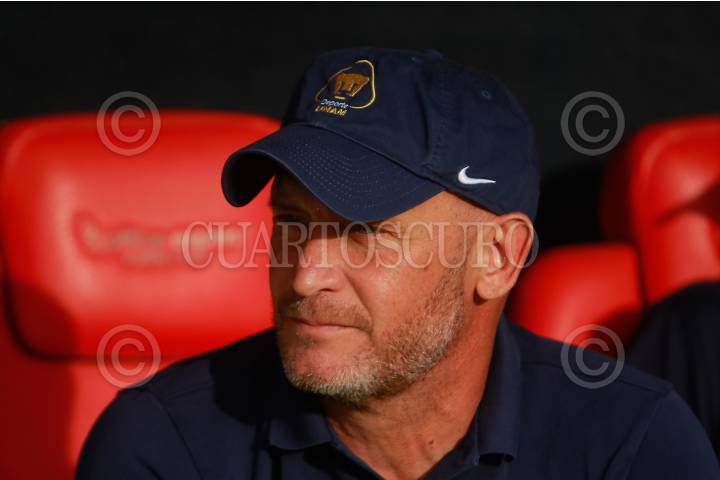 El DT de Pumas Andrés Lillini durante el partido amistoso de fútbol entre Pumas vs Celta de Vigo, como parte de la gira del equipo español por Norteamérica, disputado en el estadio Olímpico Universitario.