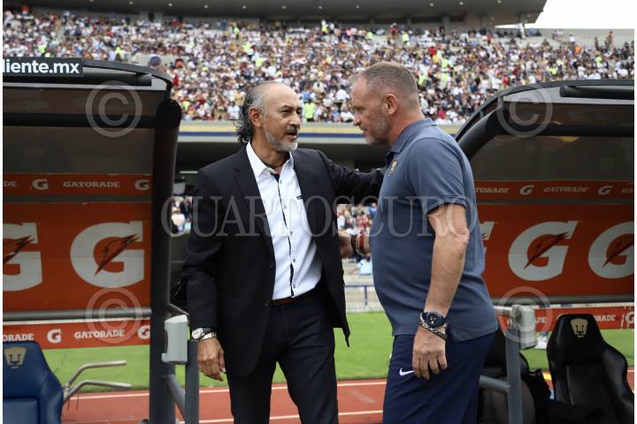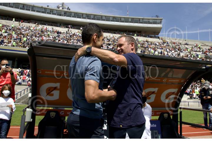 Salió de los dos Directores Técnicos Raúl Gutiérrez y André Lillini previo al partido de fútbol Pumas vs Cruz Azul correspondiente a la jornada 15 del Torneo Apertura 2022 de Liga BBVA MX, en el estadio Olímpico Universitario.