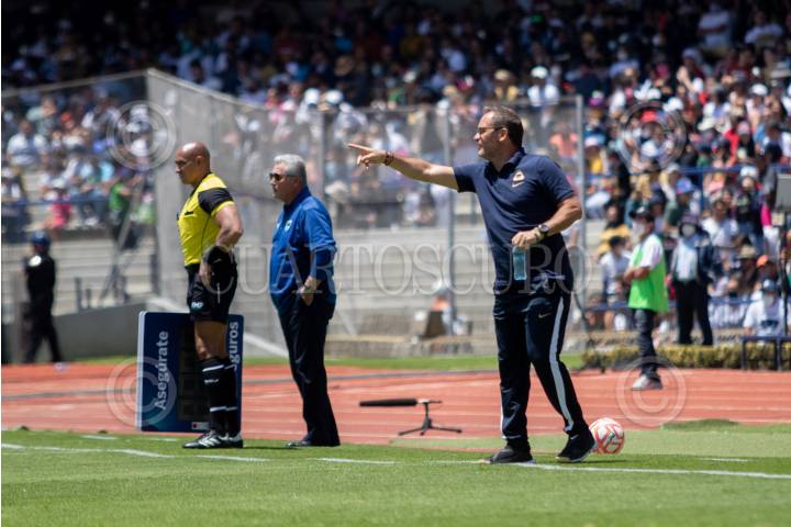 El DT Andrés Lillini durante el partido de fútbol Pumas vs Santos correspondiente a la jornada 10 del Torneo Apertura 2022 de Liga BBVA MX, en el estadio Olímpico Universitario.