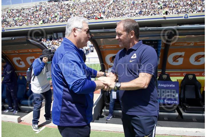 Los D.T. de los Diablos de Toluca y Rayos de Necaxa, Ignacio Ambriz y Andrés Lillini previo al encuentro en el estadio Nemesio Diez.