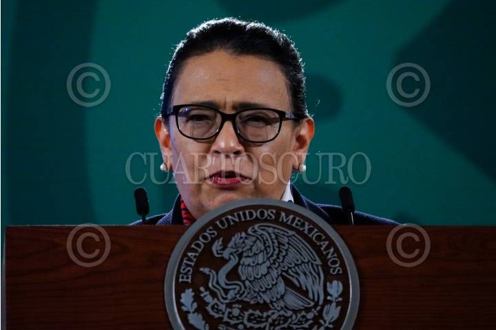 Rosa Icela Rodríguez durante la conferencia matutina sobre seguridad en Palacio Nacional