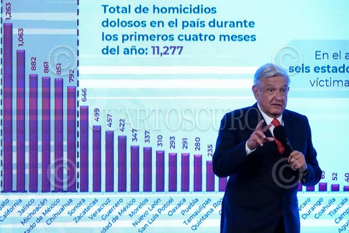Andrés Manuel López Obrador durante la conferencia matutina sobre seguridad en Palacio Nacional