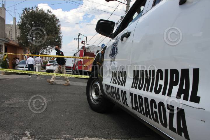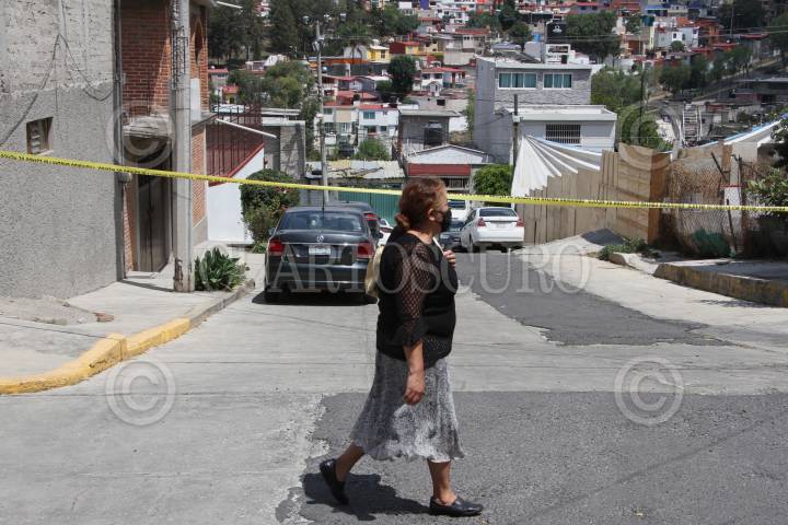 Elementos de la Policía, Bomberos y peritos resguardan el domicilio del feminicida serial Andrés Filomeno "N", de 72 años, que se ubica en la calle Margaritas, en la colonia Lomas de San Miguel