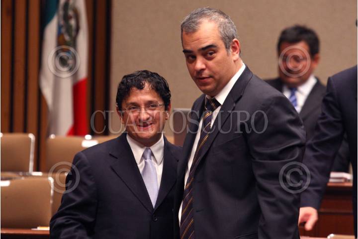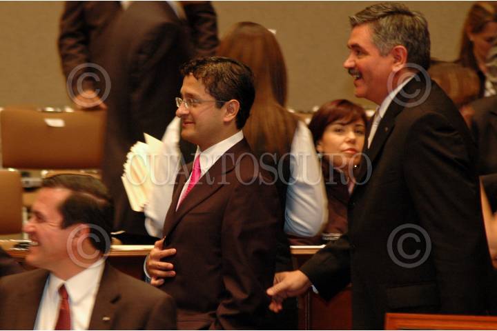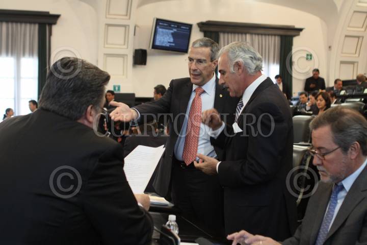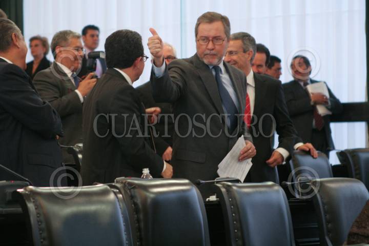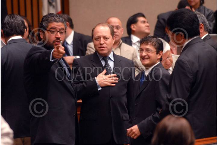 MÉXICO, D.F., 03SEPTIEMBRE2009.- Los senadores del PAN Ricardo Garcia Cervantes y Humberto Andrade dialogan con los senadores del PRD Carlos Navarrete y Graco Ramirez durante la sesión ordinaria del Senado de la República. FOTO: CUARTOSCURO.COM