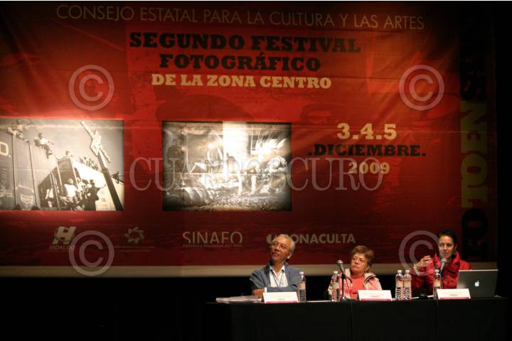 PACHUCA, HIDALGO, 04DICIEMBRE2009.- Durante el segundo Festival Fotógrafico, de la zona centro, organizado por el Instituo de Cultura del estado y que se realiza desde ayer en esta ciudad, el crítico y curador Armando Cristeto, y las fotografas Yolanda Andrade y Lourdes Almeida compartieron su experiencia con jóvenes becados y público en general. FOTO: MISAEL VALTIERRA/CUARTOSCURO.COM