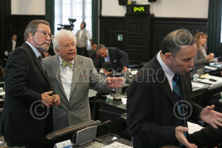MÉXICO, D.F., 19JUNIO2009.- Los consejeros Benito Nacif, Alfredo Figueroa y Virgilio Andrade Martinez, durante los trabajos de la sesión extraordinaria del Consejo General celebrada hoy por la tarde. FOTO: RICARDO CASTELAN/CUARTOSCURO.COM