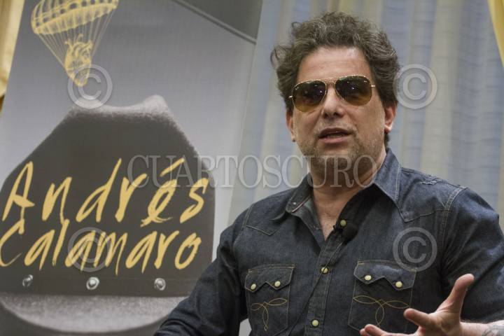 MÉXICO, D.F., 10SEPTIEMBRE2015.- El cantautor argentino Andrés Calamaro presentó su libro "Paracaídas y vueltas. Diarios Íntimos", durante una conferencia en un hotel de la ciudad de México. FOTO: ISAAC ESQUIVEL /CUARTOSCURO.COM