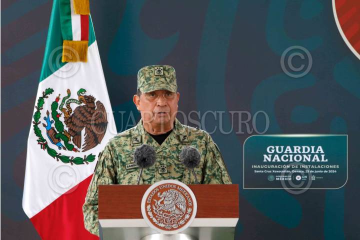 SANTA CRUZ XOXOCOTLÁN, OAXACA, 22JUNIO2024.- Luis Cresencio Sandoval González, secretario de la Defensa Nacional; durante la inauguración de instalaciones de la Guardia Nacional en Santa Cruz Xoxocotlán. FOTO: PRESIDENCIA/CUARTOSCURO.COM