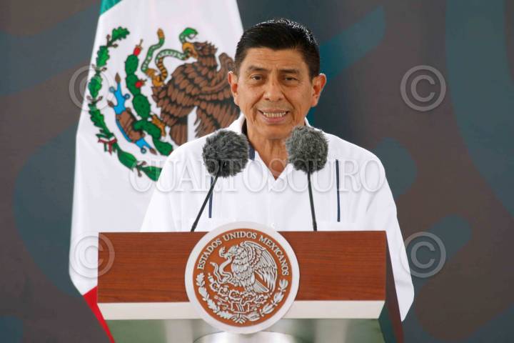 SANTA CRUZ XOXOCOTLÁN, OAXACA, 22JUNIO2024.- Salomón Jara Cruz, gobernador Constitucional del Estado de Oaxaca; durante la inauguración de instalaciones de la Guardia Nacional en Santa Cruz Xoxocotlán. FOTO: PRESIDENCIA/CUARTOSCURO.COM