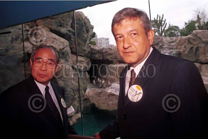 Matsumara Takehisa, alcalde de Nagoya, Japón, hizó la entrega oficial de 10 ejemplares de pinguinos de Humboldt al jefe de gobierno del D.F, Andrés Manuel Lopéz Obrador, como parte del XXIV Aniversario del hermanamiento de las ciudades de Nagoya y México, D.F.. FOTO: Oswaldo Ramírez/CUARTOSCURO.COM