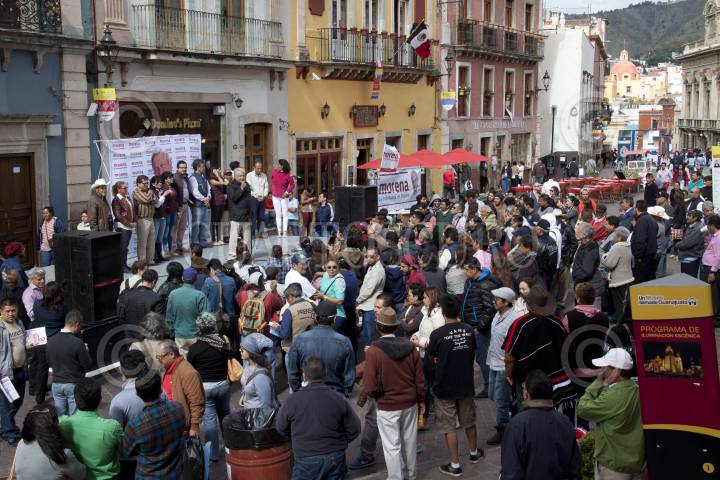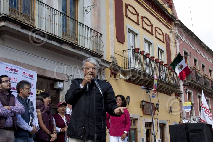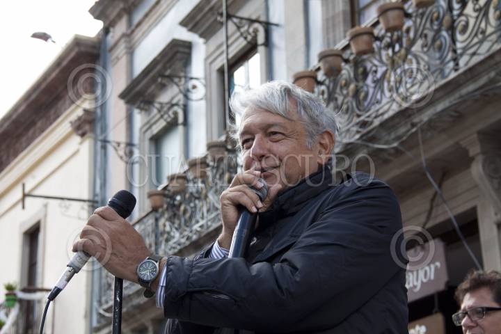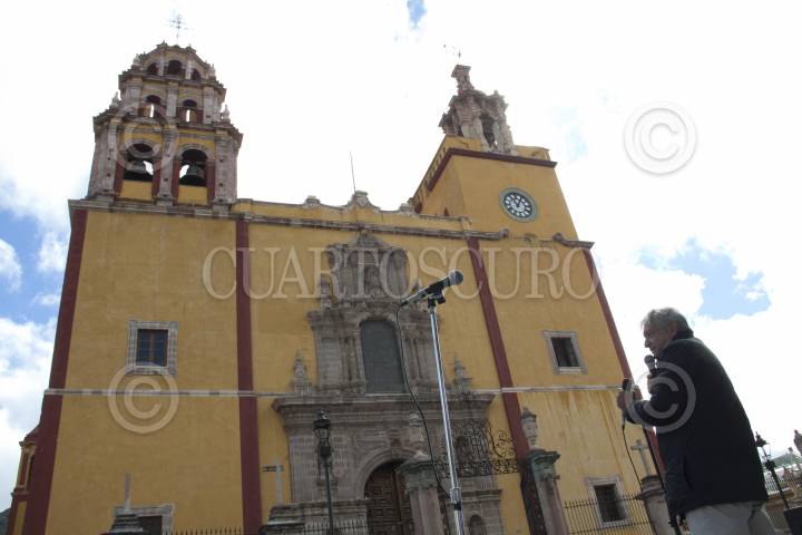 GUANAJUATO, GUANAJUATO, 090CTUBRE2016.- Andrés Manuel López Obrador, Presidente de Morena realizó un mitin en la explanada de la Catedral, esta Ciudad con Militantes de este Partido Político. y acompañado del dirigente de Morena de este Estado. FOTO: ANTONIO CRUZ /CUARTOSCURO.COM