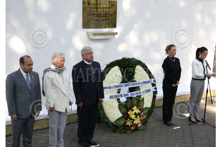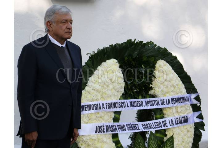 CIUDAD DE MÉXICO, 20NOVIEMBRE2018.- Andrés Manuel Lopez Obrador, presidente electo de Mexico, montó una guardia de honor en el lugar donde asesinaron a Francisco I. Madero y Jose Maria Pino Suarez para conmemorar el 108 aniversario del inicio de la revolución mexicana. FOTO: SAÚL LÓPEZ /CUARTOSCURO.COM