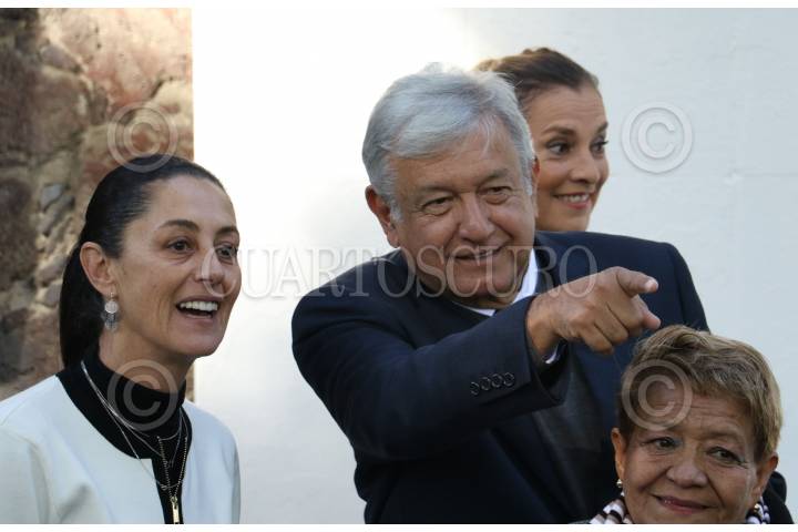 CIUDAD DE MÉXICO, 20NOVIEMBRE2018.- Claudia Sheinbaum, proxima gobernadora de la Ciudad de México y Andrés Manuel Lopez Obrador, presidente electo de Mexico, a su llegafa al parque anfora donde realizaron un aguardia de honor para conmemorar el 108 aniversario del inicio de la revolución mexicana. FOTO: SAÚL LÓPEZ /CUARTOSCURO.COM