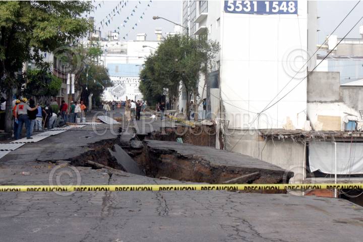 MÉXICO,D,F.,19 OCTUBRE2007.- Debido a la lluvia intensa y al reblandecimiento de la tierra, se abrio na grieta de aproximadamente 25 metros de largo en la calle Andromaco en la colonia Ampliacion Granada en la delegación Miguel Hidalgo. Al lugar elementos de proteccion civil acordonaron la zona para que personas no transiten por el lugar. FOTO: SAUL LOPEZ/CUARTOSCURO.COM