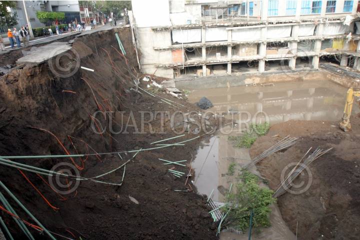 MÉXICO, D.F., 19OCTUBRE20007.- En la calle de Andromaco en la colonia Ampliación Granda en la delegación Miguel Hidalgo, en una obra en construcción se deslavo la tierra durante la madrugada provocando un boquete de varios metros de diametro, lo que ocasiono que el Ejercito acordonará la Zona. FOTO: PEDRO MARRUFO/CUARTOSCURO.COM