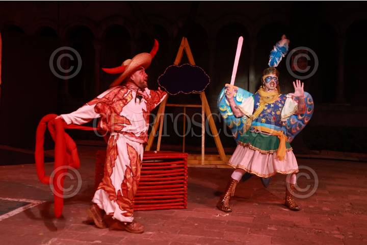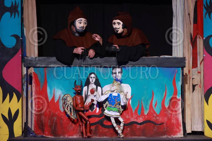 CIUDAD DE MÉXICO, 19DICIEMBRE2024. Inicio de temporada de la puesta en escena “Tradicional Pastorela Mexicana”, que se presenta en el Claustro del Instituto Cultural Helénico hasta el 29 de diciembre. Un par de marionetas inician el espectáculo. FOTO: EDGAR NEGRETE LIRA/CUARTOSCURO.COM