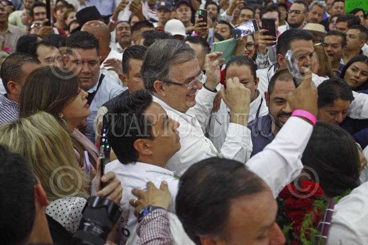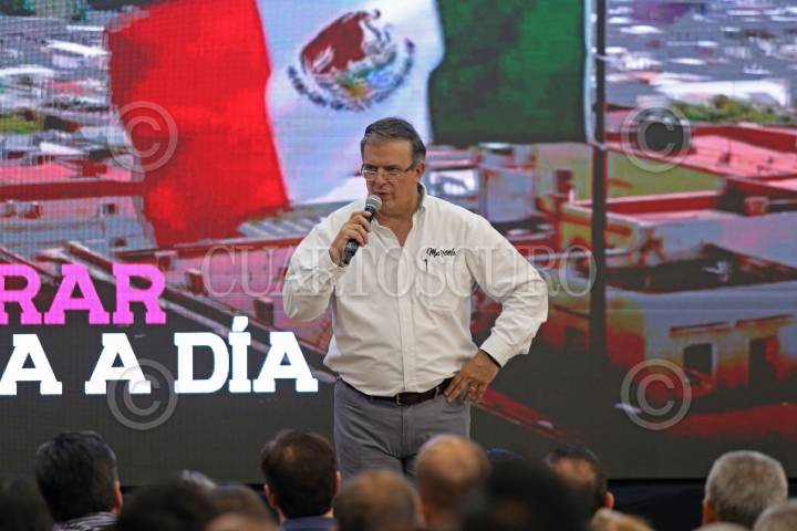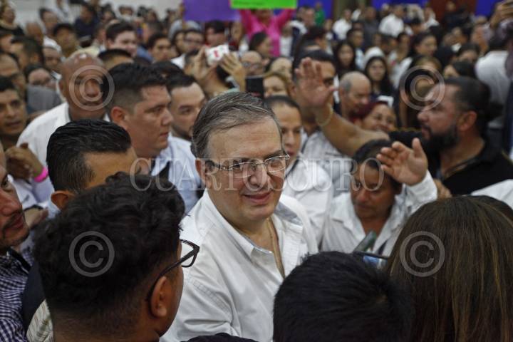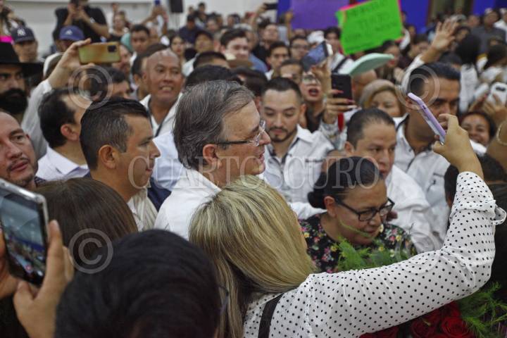Marcelo Ebrard Casaubón, durante su arribo al Colegio de Ingenieros de Jalisco.