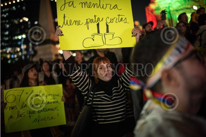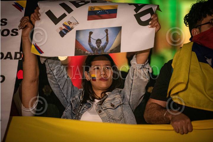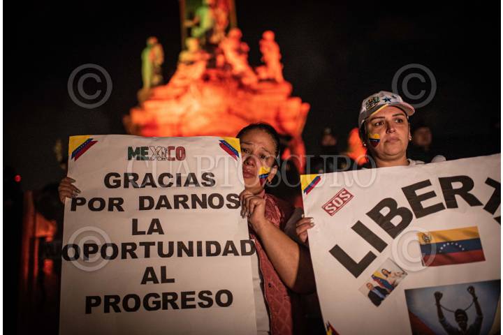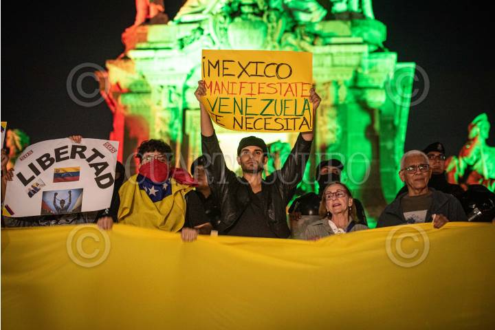 CIUDAD DE MEXICO, 30JULIO2024.- Venezolanos manifiestan su descontento al resultado electoral en su país, durante un mitin de protesta en el Angel de la Independencia. FOTO: PEDRO ANZA /CUARTOSCURO.COM