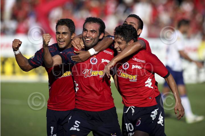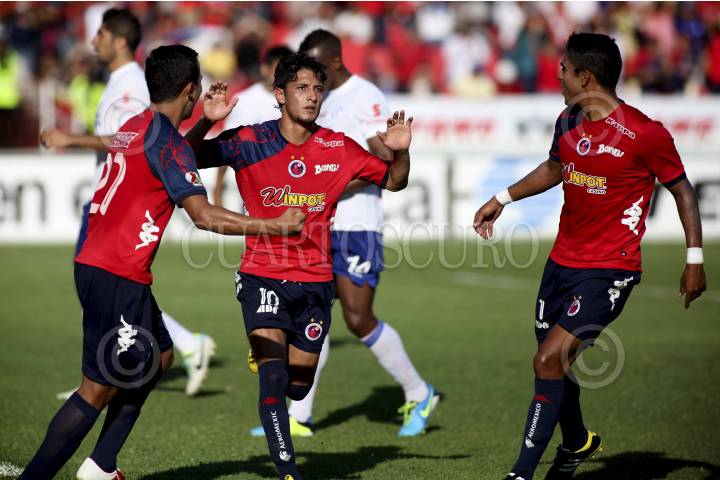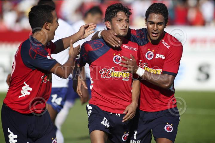 BOCA DEL RÍO, VERACRUZ, 03AGOSTO2013.- Acciones del encuentro entre los Tiburones Rojos del Veracruz y la maquina del Cruz Azul quienes fueron derrotados 3 goles a 2 en la cancha del Luis Pirata Fuente. En la imagen el delantero escualo Ángel Reyna festeja su anotación. FOTO: FÉLIX MÁRQUEZ /CUARTOSCURO.COM