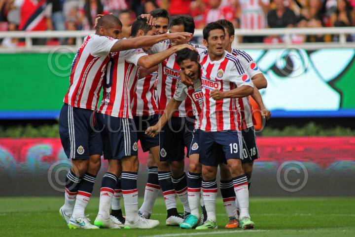 ZAPOPAN, JALISCO. 18ENERO2015.- En la imagen el jugador del Guadalajara Ángel Reyna celebra su anotación en el partido, esto en partido correspondiente a la Jornada 2 del Torneo Clausura 2015 de la Liga MX en donde el momento el marcador es fue 2-1 a favor del equipo de Chivas. FOTO: FERNANDO CARRANZA GARCIA / CUARTOSCURO.COM