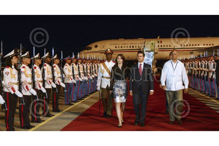 LAHABANA, CUBA, 28ENERO2014.- Ayer por la noche el presidente Enrique Peña Nieto, acompañado de su esposa Angélica Rivera de Peña, arribó al aeropuerto internacional José Martí de la capital cubana, con motivo de su participación en la II Cumbre de la Comunidad de Estados Latinoamericanos y Caribeños (CELAC). FOTO: PRESIDENCIA /CUARTOSCURO.COM