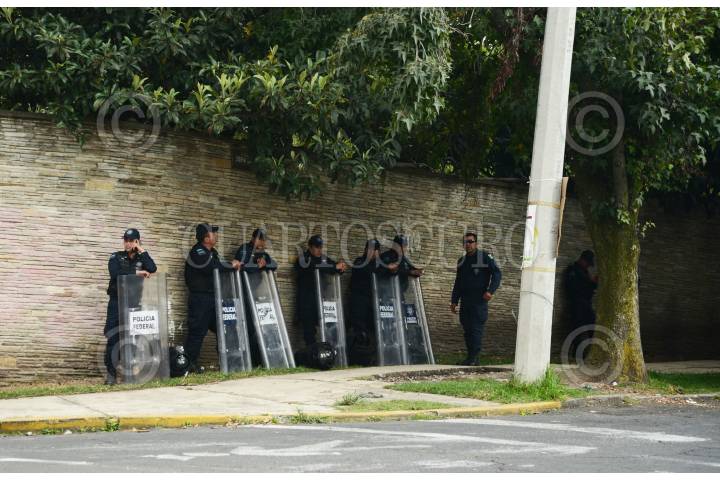 MÉXICO, D.F., 15NOVIEMBRE2014.- Aproximadamente Un kilómetro a la redonda de la casa de Angélica Rivera de Peña, ya se encuentra resguardado por un despliegue de mas de 2000 miembros de fuerzas policiacas. Unos se encuentran uniformados y parados en las banquetas y otros están en camiones que no portan insignias de ninguna dependencia gubernamental. Se observan también algunos grupos de personas vestidas de civil hablando con hombres uniformados, presuntos infiltrados. FOTO: ISABEL MATEOS /CUARTOSCURO.COM