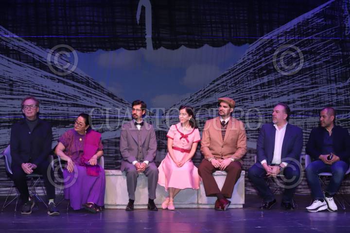 CIUDAD DE MÉXICO, 06MARZO2024. El director Marcelo González; los actores Angelica Aragon, Víctor Ochoa, Caro Vélez, Felipe Álvarez, Horacio Castelo y el musicalizador Guillermo Palacios durante la conferencia de prensa de la obra “Si tú fueras él”, próxima a presentarse en el Teatro Xola. FOTO: EDGAR NEGRETE LIRA/CUARTOSCURO.COM