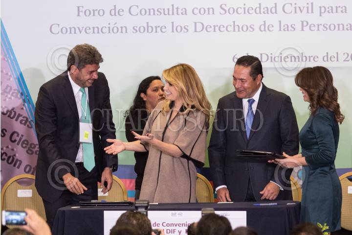 cIUDAD DE MÉXICO, 06DICIEMBRE2017.- El empresario Arturo Elias Ayub, la primera dama Angélica Rivera de Peña, Luis Enrique Miranda Nava, secretario de Desarrollo Social, y Laura Barrera Fortoul, directora del Sistema Nacional DIF, encabezaron la clausura del Foro de Consulta con Sociedad Civil para el Informe de la Convención sobre los Derechos de las Personas con Discapacidad, FOTO: SAÚL LÓPEZ /CUARTOSCURO.COM