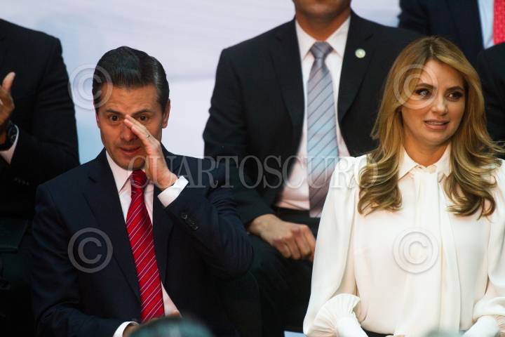 CIUDAD DE MÉXICO, 20FEBRERO2018.- Enrique Peña Nieto, Presidente de México, y su esposa Angélica Rivera, durante el inicio de la colecta de la Cruz Roja 2018 en el Palacio Nacional. FOTO: MOISÉS PABLO /CUARTOSCURO.COM