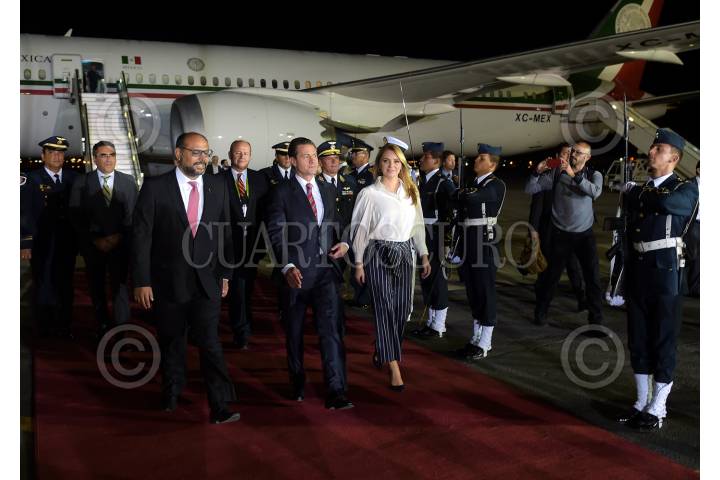 LIMA, PERÚ, 13ABRIL2018.- Lima, República del Perú, 13 de abril de 2018.- El presidente Enrique Peña Nieto, y su esposa, Angélica Rivera de Peña, arribaron esta madrugada al área militar del Aeropuerto Internacional Jorge Chávez en la capital peruana con motivo de la participación del Mandatario mexicano en la VIII Cumbre de las Américas. FOTO: PRESIDENCIA /CUARTOSCURO.COM