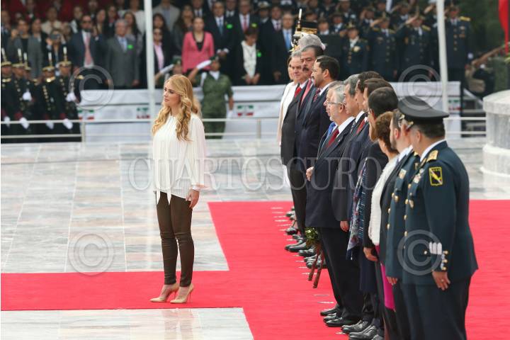 CIUDAD DE MÉXICO, 13SEPTIEMBRE2018.- La primera dama Angélica Rivera durante la ceremonia del 171 aniversario de la gesta heroica de los Niños Héroes de Chapultepec, en la explanada del altar a la patria. FOTO: CUARTOSCURO.COM