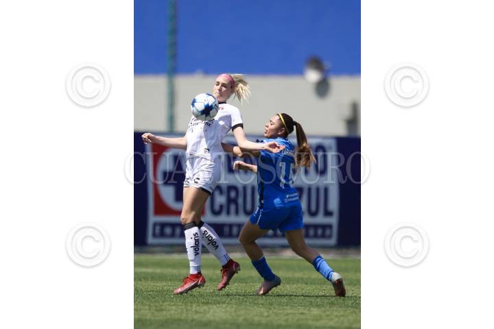 Angelina Hix de Tijuana y Nancy Zaragoza de Cruz Azul durante el partido de fútbol correspondiente a la jornada 8 del torneo Clausura 2022 “Grita México” de la Liga MX Femenil entre Cruz Azul vs Tijuana en el Centro de Alto Rendimiento La Noria.