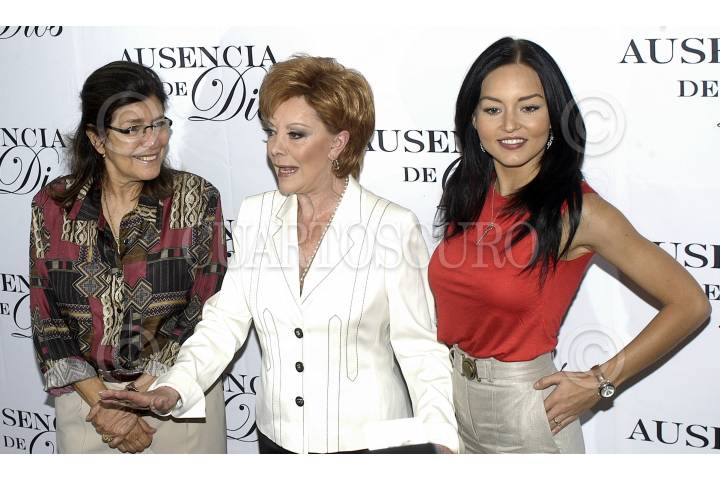 MÉXICO, D.F., 17MAYO2011.- Las actrices, Raquel Olmedo, Jacqueline Andere y Angelique Boyer durante la conferencia que realizaron para dar los pormenores de la obra ¡Ausencia de Dios! que se realizó en un restaurante de la zona de Polanco. FOTO: IVAN MENDEZ/CUARTOSCURO.COM