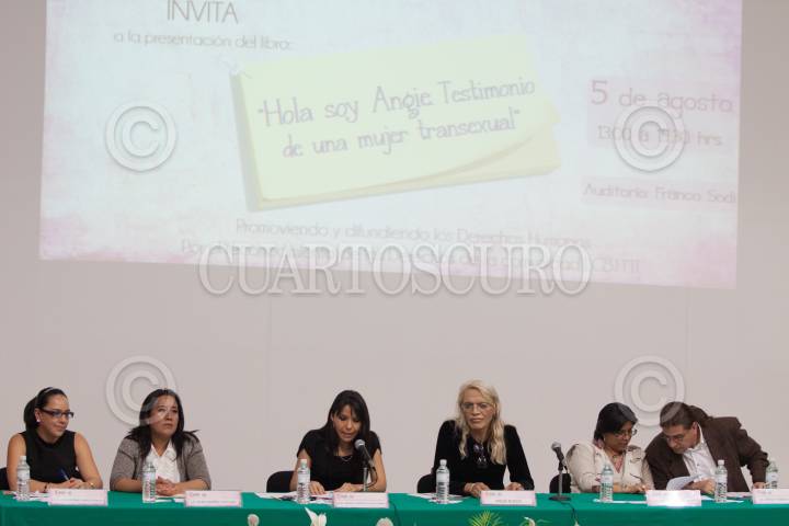 MÉXICO, D.F., 05AGOSTO2011.- Angie Rueda del Castillo presentó su libro "Hola soy Angie Testimonio de una mujer transexual", en el auditorio Franco Sodi de la Procuraduría General de Justicia del Distrito Federal, en el marco de reconocimiento de los Derechos de la comunidad LGBTTTl. FOTO: MOISÉS PABLO/CUARTOSCURO.COM