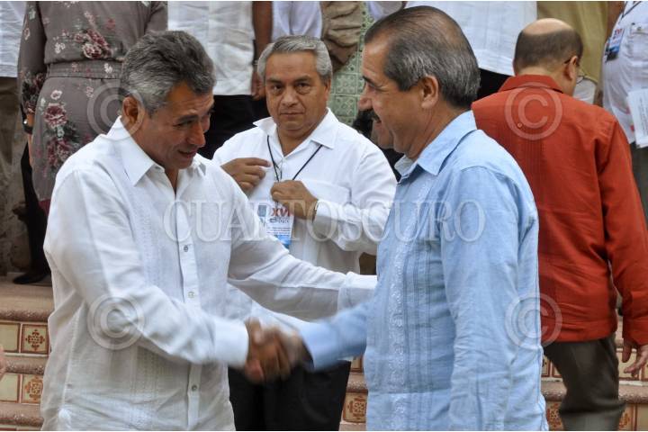 MANZANILLO, COLIMA, 24JUNIO2011.- Jesús Anguiano, Gobernador del estado de Colima clausuró el Foro del Sector Agroalimentario Nacional frente a la apertura nacional. FOTO: CUARTOSCURO.COM
