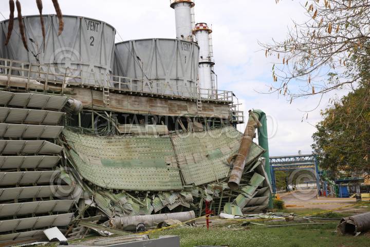 Una sección de las torres de enfriamiento o calderas de la Central Termoeléctrica Mérida II, ubicada en Anillo Periférico en la salida hacia el municipio de Umán colapsó. Hasta el momento se desconocen las causas que originaron el incidente.