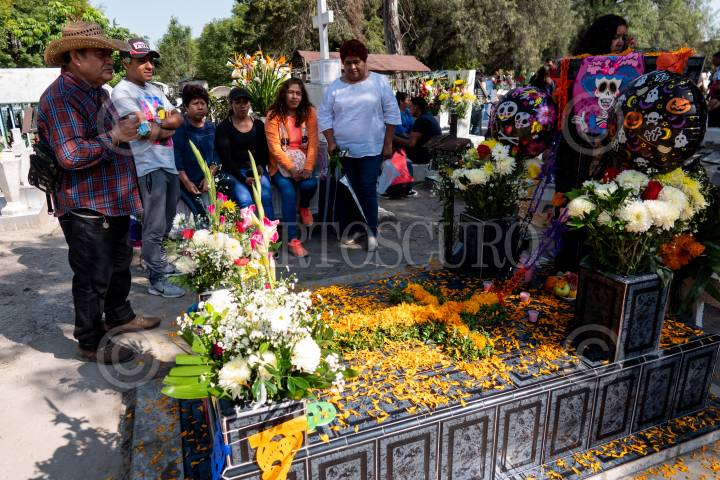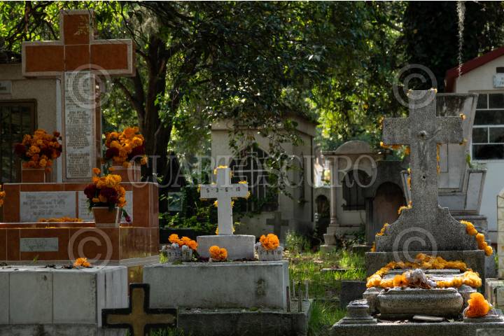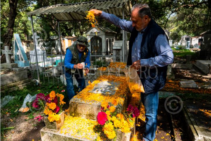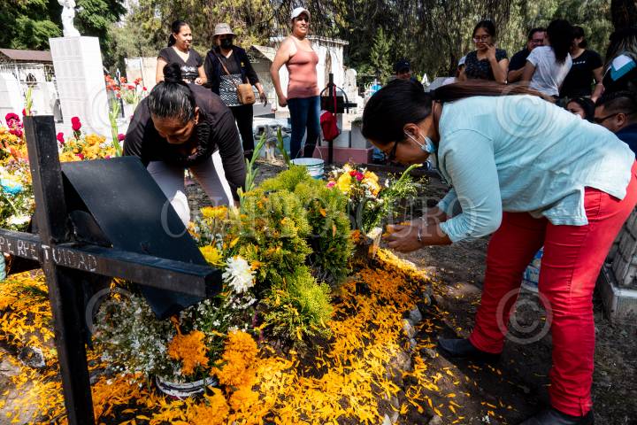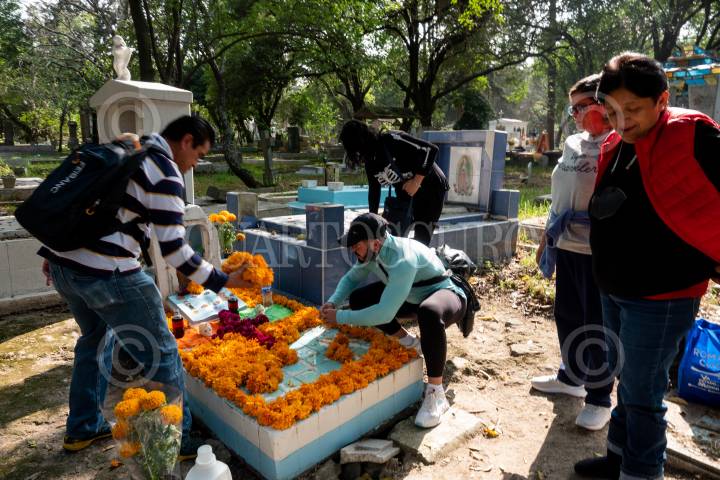 CIUDAD DE MÉXICO, 01NOVIEMBRE2023.- Familias acuden al panteón de Dolores, en la alcaldía Miguel Hidalgo, para adornar, limpiar y compartir un momento con sus difuntos en vísperas de las fiestas de Día de Muertos. Según la tradición el día 1ero corresponde a las animas de infantes, mientras que los adultos regresan el día dos de noviembre. FOTO: GALO CAÑAS/CUARTOSCURO.COM
