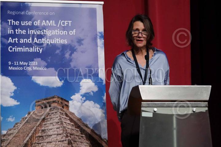 Anne Giudicelli, experta francesa en Estrategia de Inteligencia y Seguridad Global, durante la Ceremonia de inauguración de la Conferencia regional sobre "El uso de la Lucha contra el lavado de Activos y la Financiación de Terrorismo (ALA/CTF) en la Investigación de la Criminalidad del Arte y las Antigüedades”