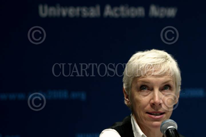MÉXICO, D.F., 04AGOSTO2008.- La cantante británica Annie Lenox embajadora global de Oxfam durante una rueda de prensa en la que pidió acceso universal a tratamiento contra el VIH/SIDA durante las actividades de la Conferencia Internacional sobre el SIDA que se realiza en el Centro Banamex. FOTO: RODOLFO ANGULO/CUARTOSCURO.COM