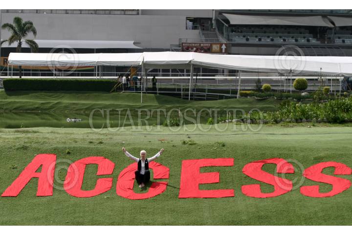 MÉXICO, D.F., 04AGOSTO2008.- La cantante britanica Annie Lenox embajadora global de Oxfam posa frente a un cartel para apoyar a las personas que reclaman acceso universal a tratamiento para las personas con VIH para el año 2010, esto durante las actividades de la Conferencia Internacional sobre el SIDA que se realiza en el Centro Banamex. FOTO: RODOLFO ANGULO/CUARTOSCURO.COM