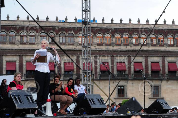 MÉXICO, D.F., 05AGOSTO2008.- Annie Lenox, cantante inglesa y activista estuvo presente en el Zocalo después de que se realizo la marcha de mujeres Todas las Mujeres, Todos los Derechos, realizada del Hemiciclo a Juarez al Zocalo. FOTO: IVAN MENDEZ/CUARTOSCURO.COM