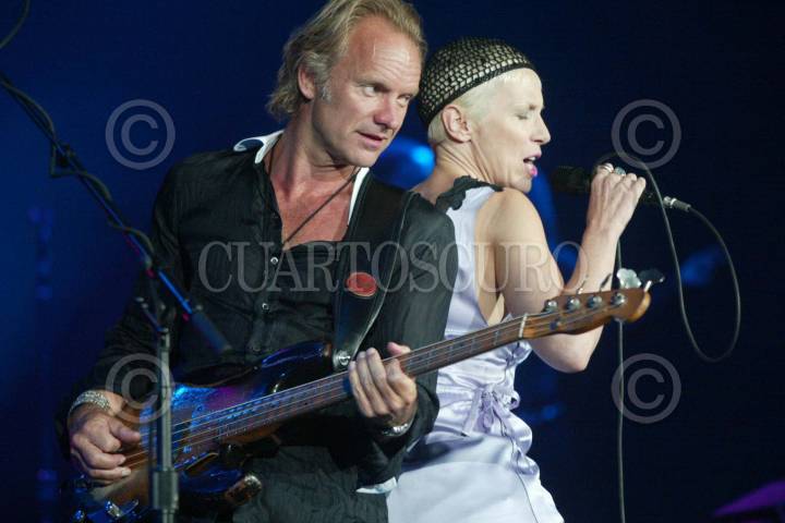México, D.F., 14SEPTIEMBRE2004.- La cantante Annie Lennox , acompaño a Sting, exintegrante del trío The Police, en el concierto que ofreció en la capital, como parte de la promoción de nuevo album Sacred Love, la cita fue en el Palacio de los Deportes. Foto: Rita Canto/CUARTOSCURO.COM
