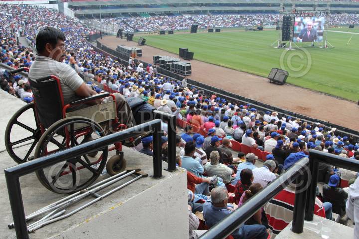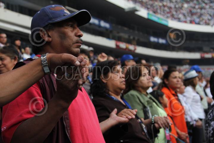MÉXICO, D.F., 25MARZO2011.- Miles de personas se dieron cita el la décima convención Nacional de Alcohólicos Anónimos en el estadio azteca donde en esta ocasión no se vendieron bebidas alcohólicas donde contaron sus experiencias sobre el problema que han vivido, en el lugar asistió Marcelo Ebrard casaubon, Jefe de Gobierno Capitalino. FOTO: ENRIQUE ORDÓÑEZ/CUARTOSCURO.COM