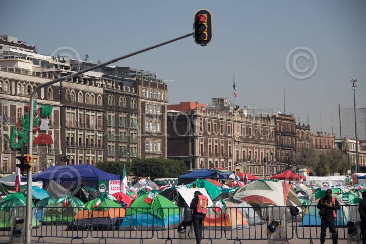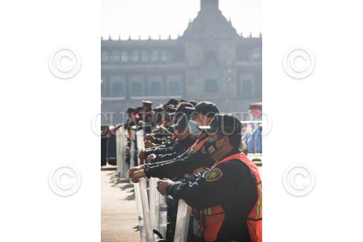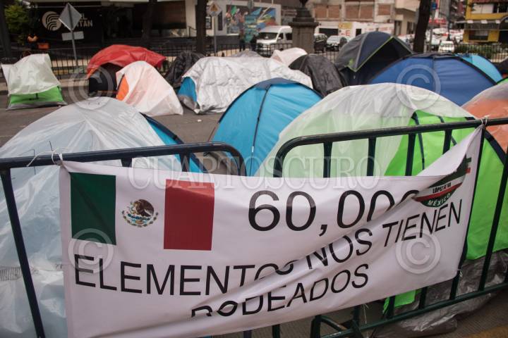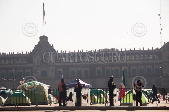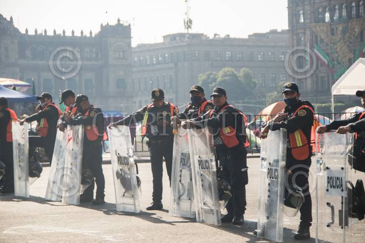 El Frente Nacional Anti AMLO, que se encuentra en plantón en la plancha del Zócalo de la Ciudad, se encuentra resguardada por policías capitalinos.