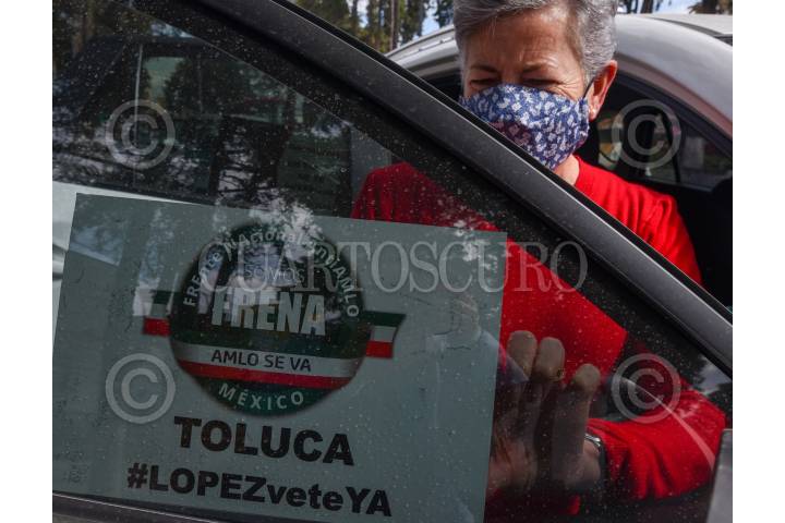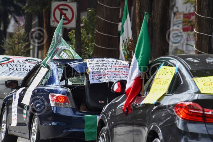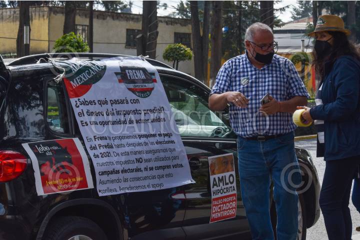 Integrantes de FRENA realizaron una caravana en la ciudad de Toluca pidieron a la población postergará el pago del impuesto predial.